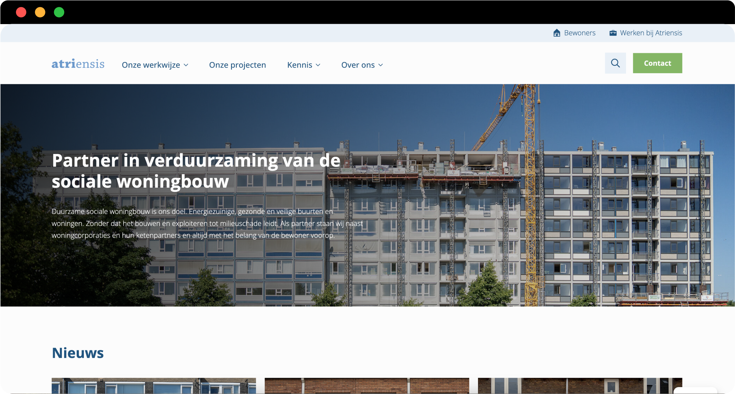 We hebben veel zorg besteed aan het ontwerpen van een intuïtieve en gebruiksvriendelijke navigatiestructuur, zodat bezoekers moeiteloos kunnen vinden wat ze zoeken. Of het nu gaat om informatie over projecten, diensten of kennisartikelen, de website is zo opgebouwd dat alle content snel en eenvoudig toegankelijk is.