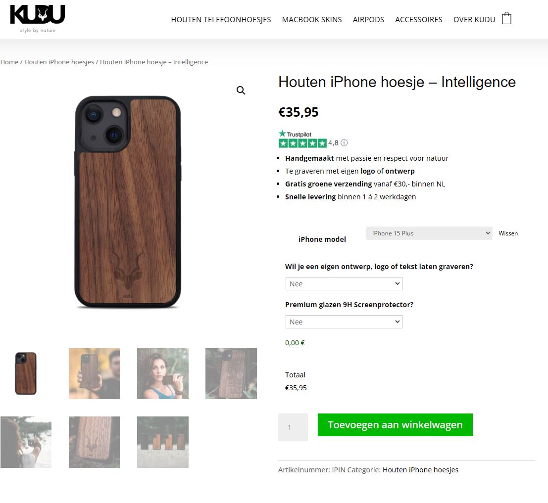 KUDU store maakt op hand gemaakte houten hoezen voor laptop en telefoon. Een webshop dat zich focust op duurzaamheid en visueel aantrekkelijke hoesjes.