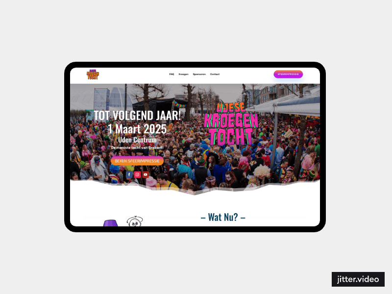 Met de landingspagina slagen we erin de sfeer van de Ujese kroegentocht perfect over te brengen. Het festival staat voor plezier, humor en energie, en dit komt duidelijk naar voren door het gebruik van felle kleuren en speelse grafische elementen. Deze visuele stijl laat de levendige en feestelijke sfeer van het evenement tot leven komen op de pagina.